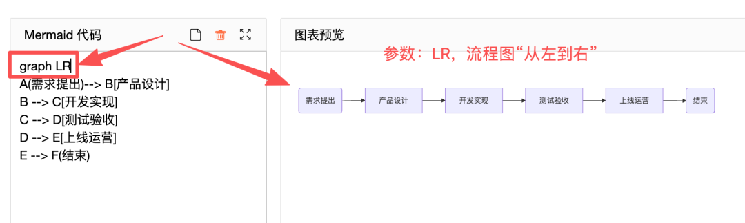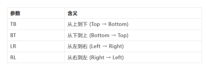 可以调整方向为 LR(从左到右),让流程更紧凑;