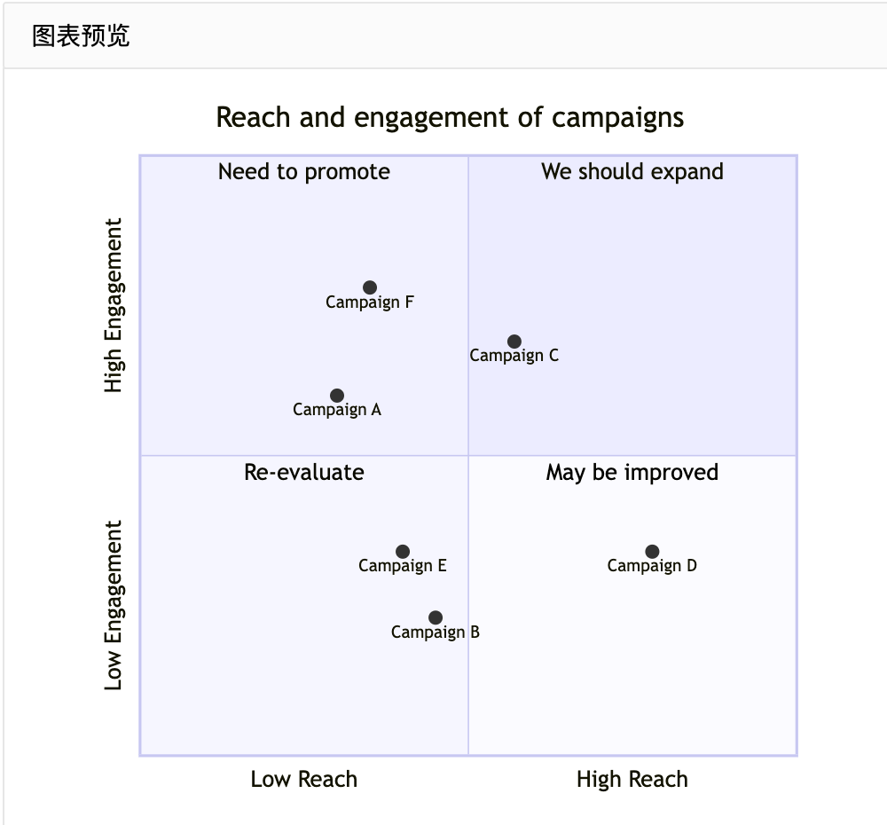 虽然 Mermaid 没有专门的象限图,但可用流程图模拟: