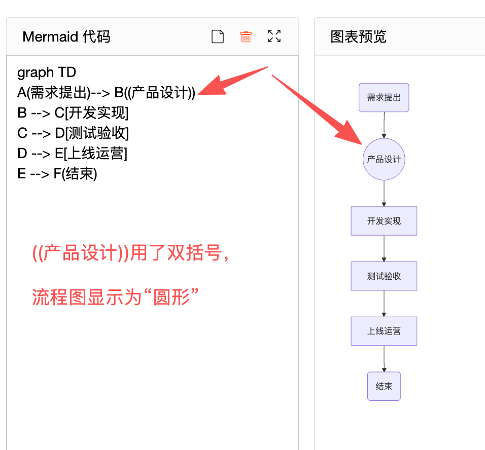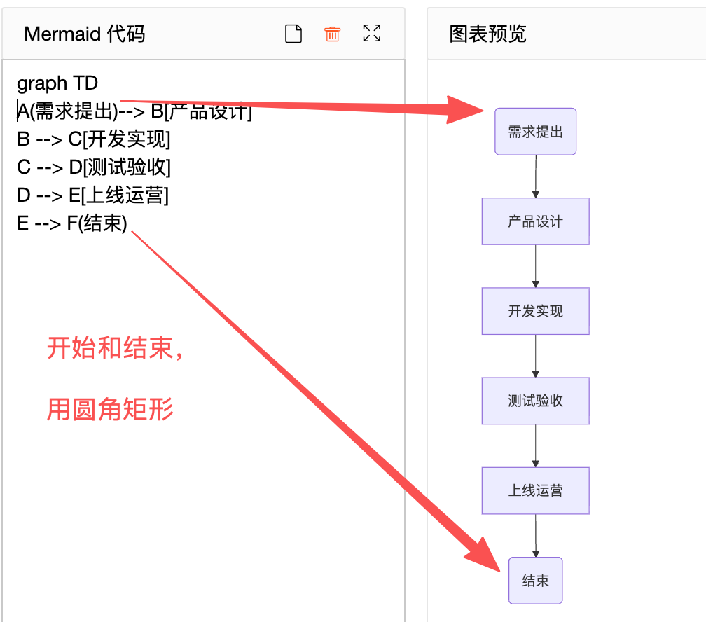 案例:圆角矩形用单括号:(需求提出),(结束)