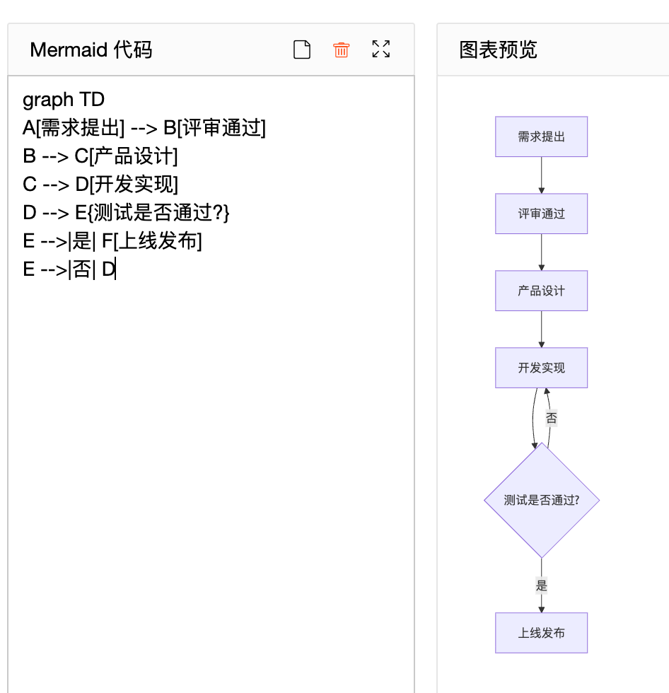 Mermaid 是一种用文本语法生成图表的轻量级标记语言。