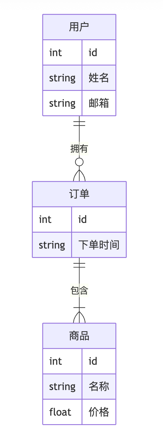 - 实体(Entity):系统中的对象,如“用户”“订单”“商品”等。