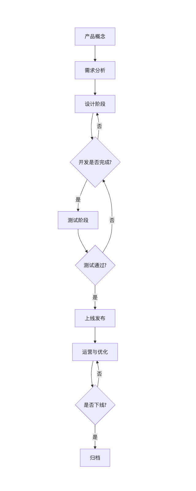 A[需求提出] –> B[评审通过] –> C[产品设计]