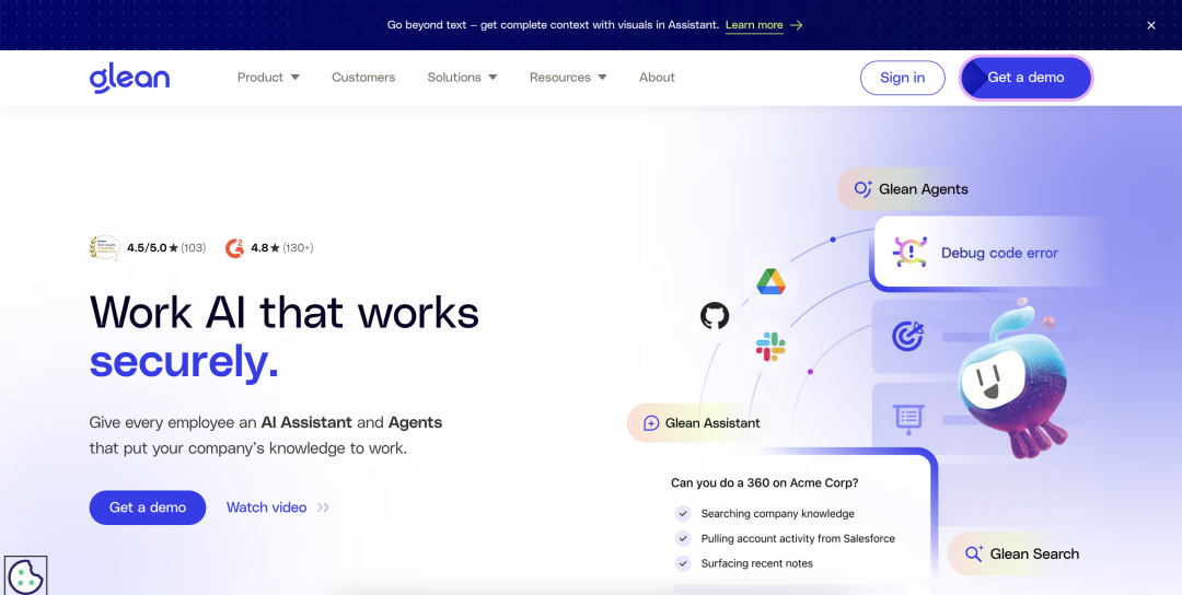 Glean在企业搜索领域的护城河不是它自己的LLM,而是它强大的“连接器”,能够接入并理解一家公司内部的Google Drive、Salesforce、Slack等几十种应用的数据。当员工提问时,它能给出结合了所有这些私有上下文的精准答案。