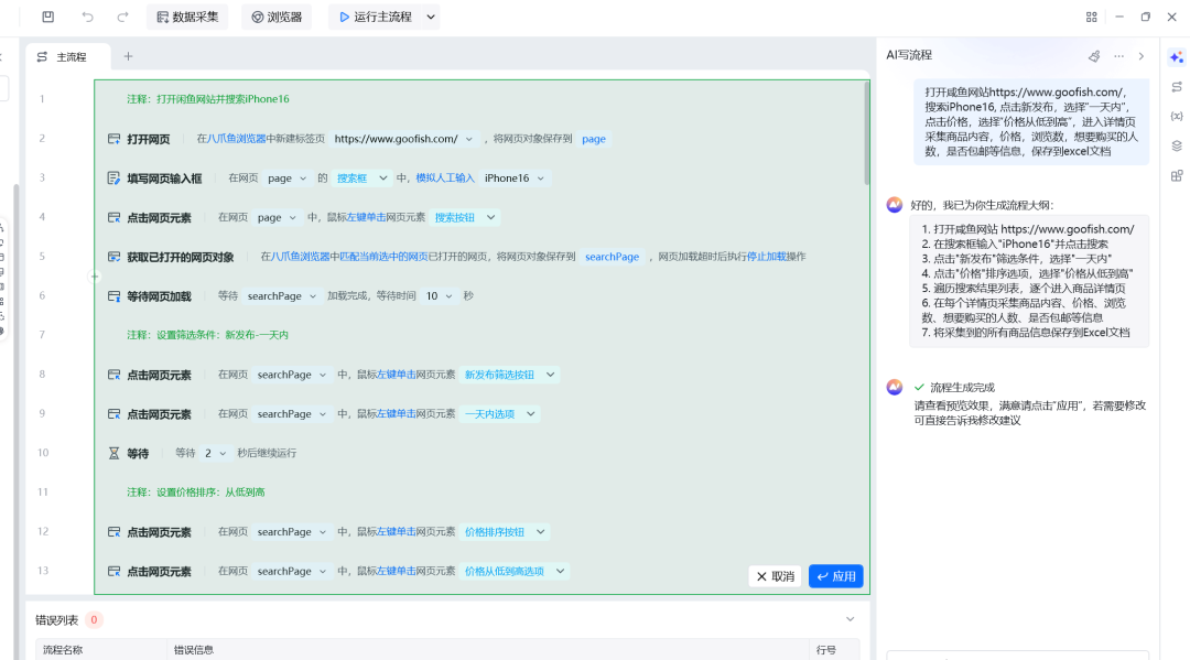 八爪鱼RPA会根据你的需求,生成步骤清单