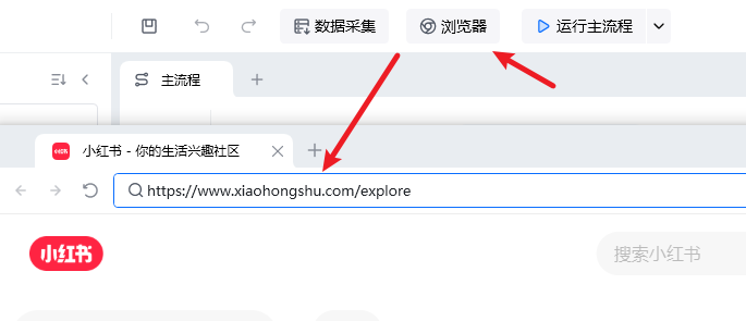 注意,小红书是要提前登录的,在运行先前点上方的「浏览器」,先打开网站登录,再运行主流程。