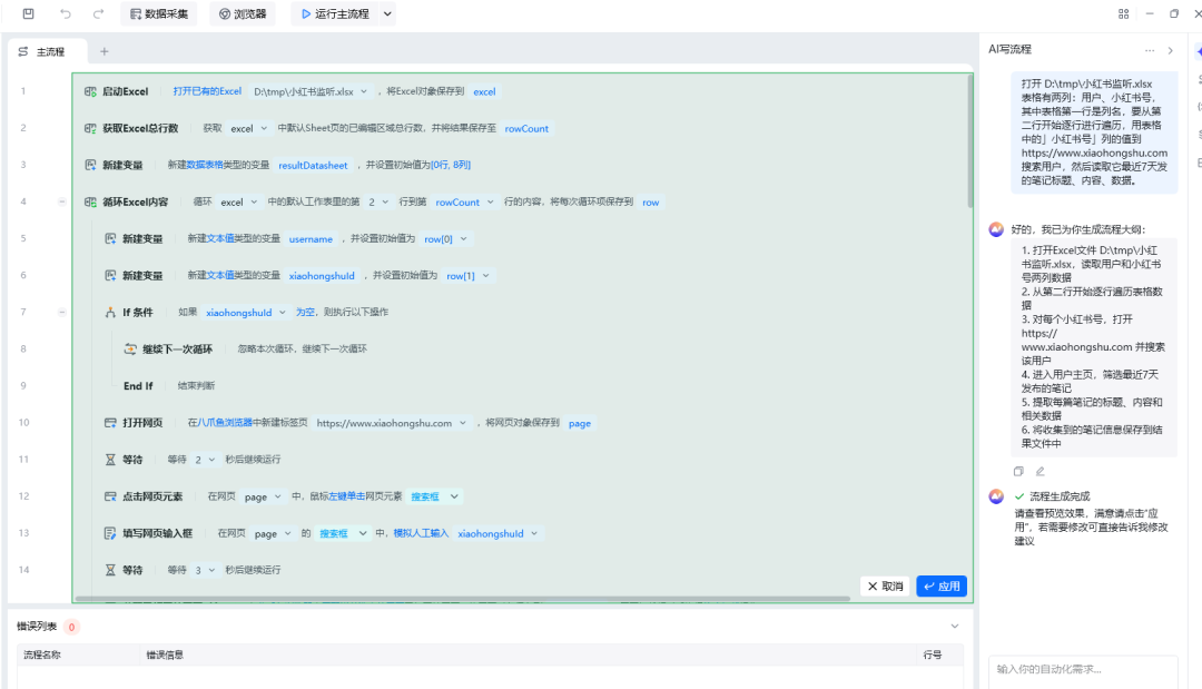 RPA也被AI干死了!!一键生成监听100个小红书博主的工作流