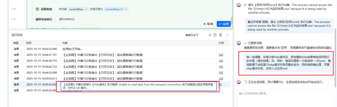 神奇的事情发生了!AI完全理解了我的意图,自动在原流程后面,补充了一个HTTP请求和数据解析的流程。