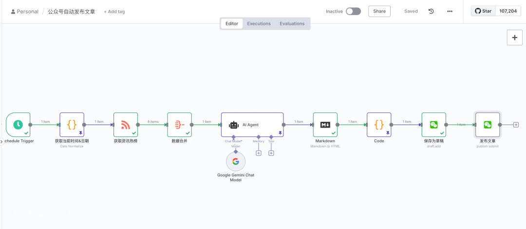 主要包含:短视频自动收藏到Notion、自动发布公众号图文、自动生成视频并发布到社交媒体、飞书到X自动化、免费 AI 图像生成器、自动化信息采集系统、GitHub热门项目自动更新排行榜、N8N数据库交互、跟踪 SEO 关键词排名、邮件自动化管理。