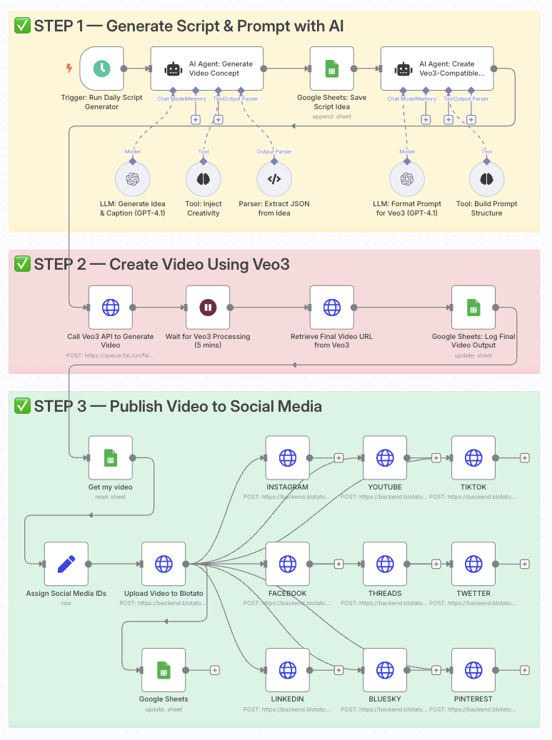 此模板非常适合内容创作者、内容运营、YouTube 用户和数字营销人员,他们希望使用 AI 每天生成高质量视频并轻松地将其分发到多个平台。