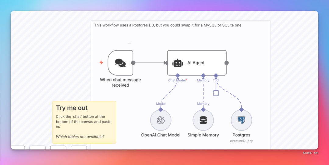 现在,有此工作流程就够了,它允许使用 AI 询问有关存储在数据库中的数据的问题。