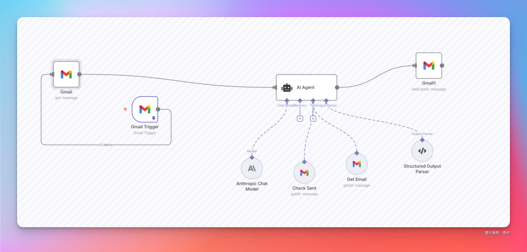 此自动化流程旨在自动监控传入的 Gmail 消息,使用 AI 分析其内容和上下文,并使用适当的标签对其进行智能分类,以便更好地组织和确定电子邮件的优先级。