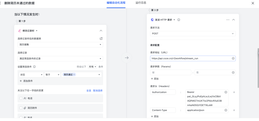 触发条件:监听 简历附件地址 字段的变化,且字段不为空。