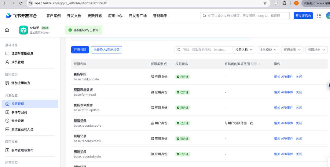 三、配置应用权限