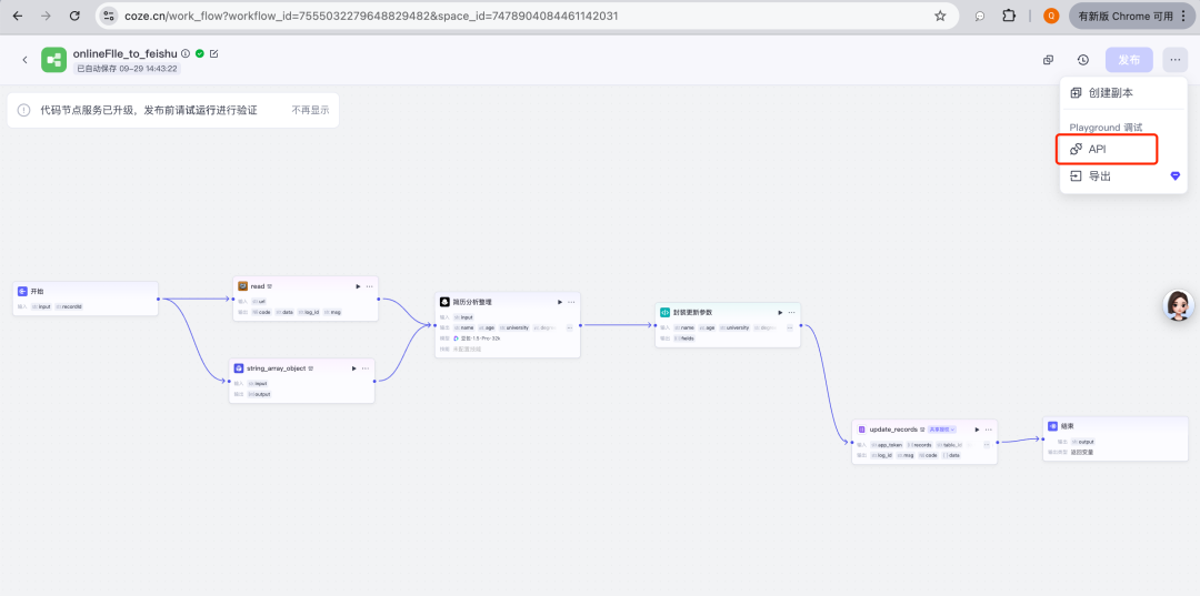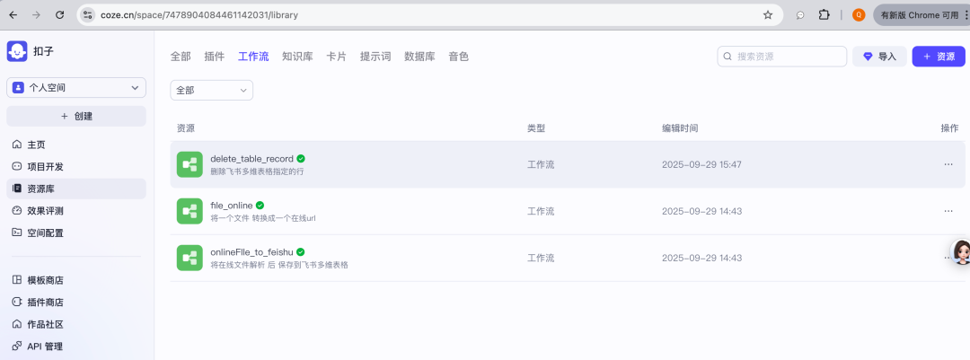 最后,根据上面自动化工作流需要我们需要配置3个Coze的工作流:
