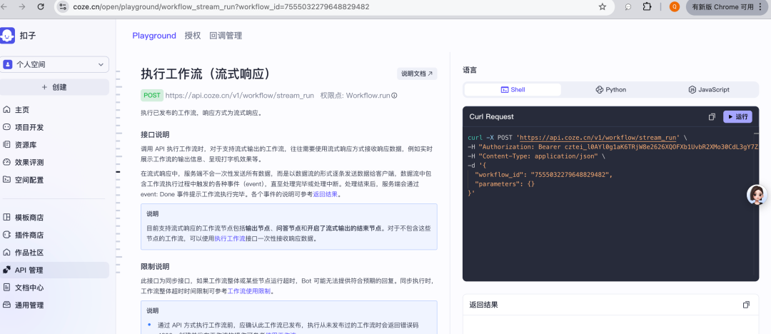 通过http来请求coze的工作流: