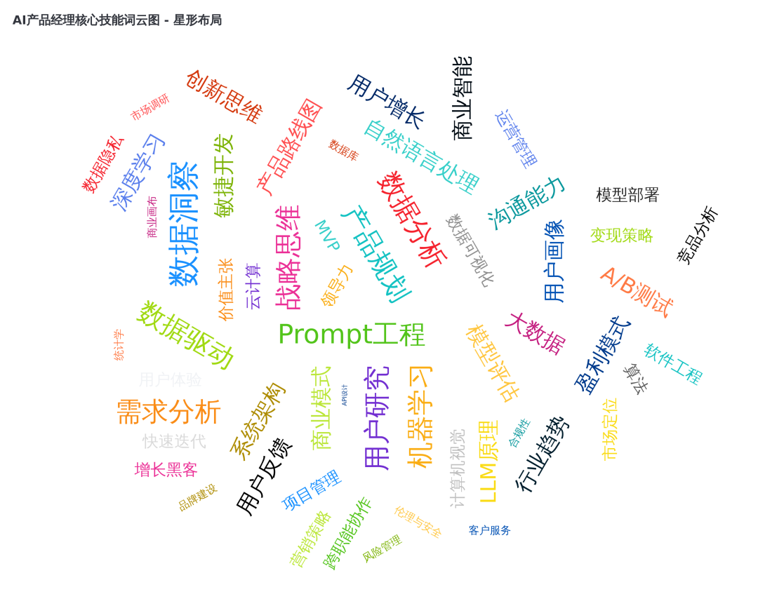 比如你做行业分析,或者要给一个新概念(比如AI PM)做个技能画像,一张词云图就特别直观,能瞬间抓住重点。