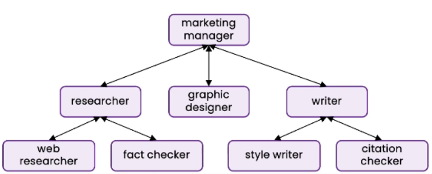 多智能体工作流,就是让不同的agent扮演一个项目里的不同角色,让他们共同完成任务,能够提升复杂任务的准确率,现在能够支持搭建多智能体的平台包括crewAI和腾讯智能体平台等,多智能体的通信模式有四种,一种是线性结构、一种是层级结构,还有一种是基于层级结构的多层级结构、最后是全员互通结构,结构越复杂,越能完成复杂任务,任务完成度也就越高,输出结果的采纳率就越高。