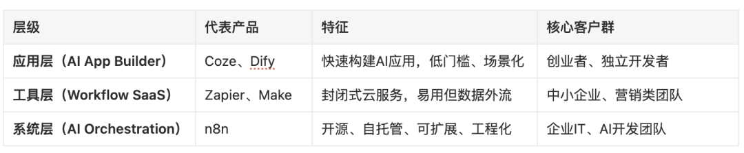 - 易用性竞争。Coze、Dify等产品在AI应用搭建层的上升,使“轻量型用户”被分流;n8n 必须保持在企业与开发者层的领先。