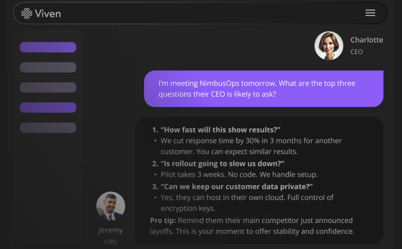 Viven 的技术通过一个叫做”成对上下文和隐私”的概念解决了这个复杂问题。这让系统能够精确判断什么信息可以分享、可以和谁分享。数字分身足够智能,能够识别个人上下文,知道什么信息需要保持私密,比如与员工个人生活相关的问题。