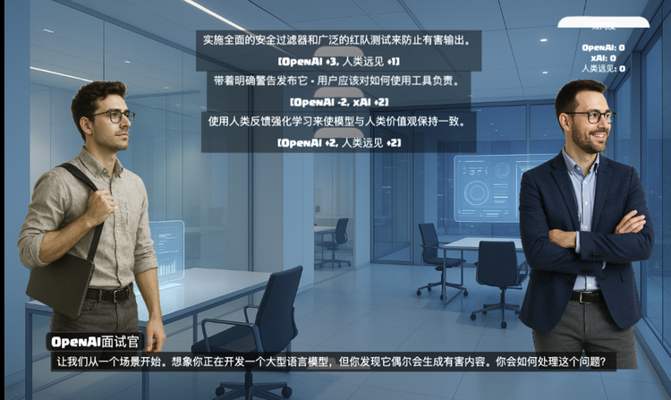 OpenAI Interview Scene: Questions about model alignment, hallucination control, and creativity limits.