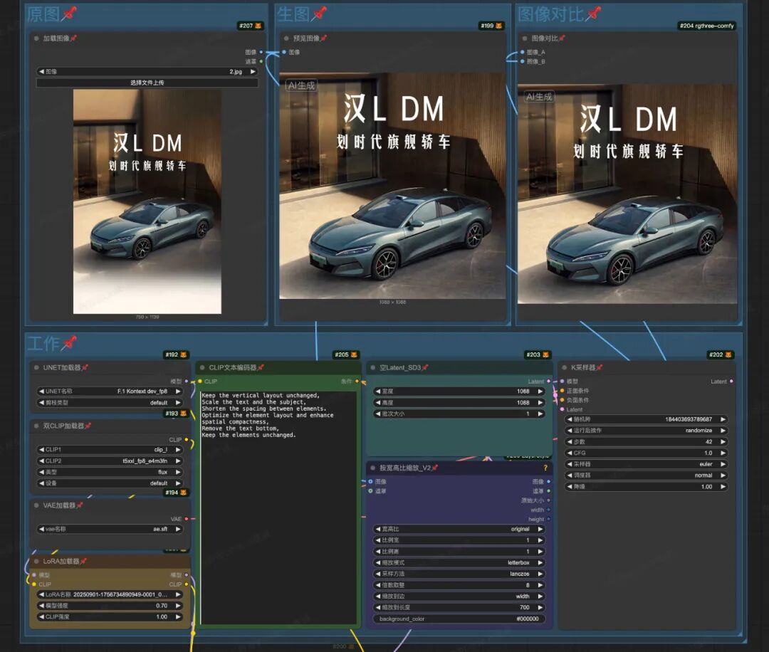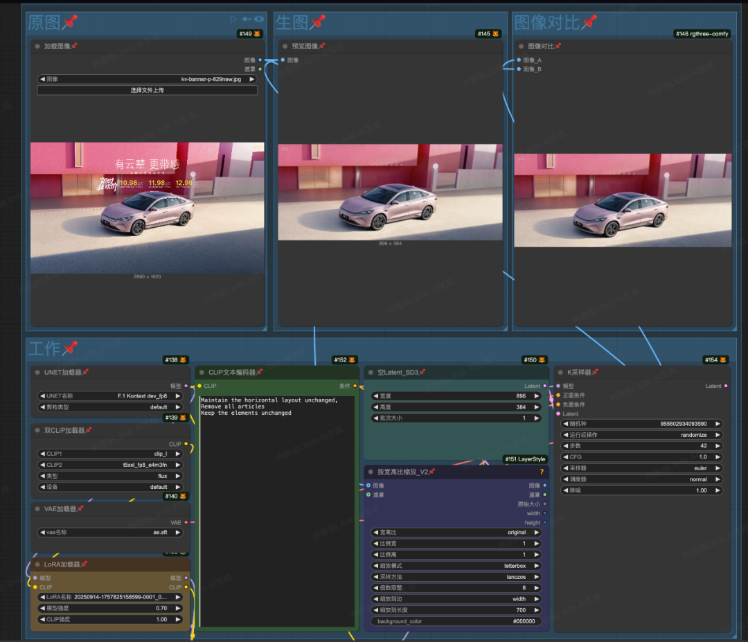 在AI高速发展的今天,在业务上为解决新车商业专题外层素材多而杂,需要人工逐张做适配的痛点,在之前传统的基础上我们做了大量的思考,让商业内容如何更好结合AI工具去提高效率,正是在这样的背景下,尝试定向化建立了kontext lora模型+工作流,打造适用于业务的工作流方式。为解决上述难题带来了新的曙光。