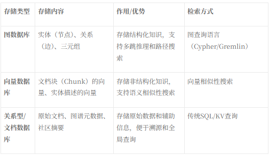 GraphRAG的存储策略通常采用混合存储,以兼顾结构化和非结构化数据的优势 [6]:
