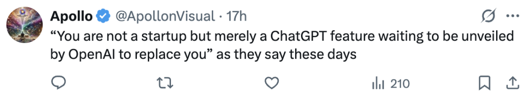 这世界上哪儿还有什么AI赛道的初创公司啊……大家做的只不过是个还没被OpenAI公布的,一公布就会被取代的ChatGPT子功能罢了!