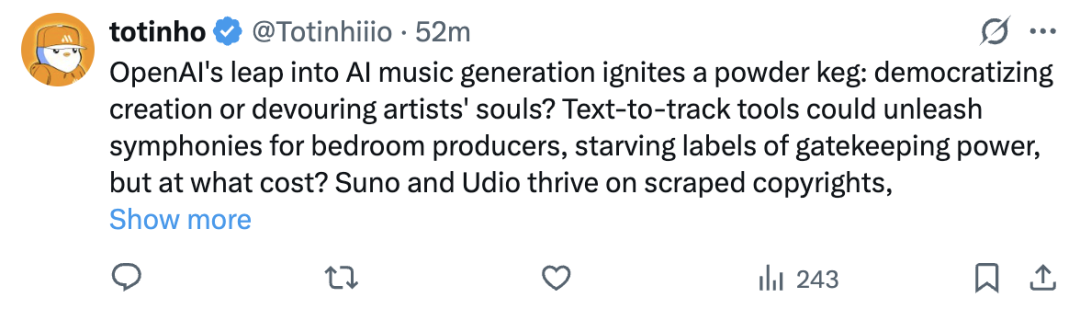 不过,鉴于Sora 2的前车之鉴,OpenAI这次的音乐产品还没出炉,就已经有不少人担心起了音乐人版权的问题。