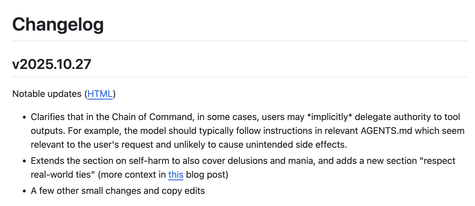 对此,OpenAI 在对应的「Model Spec」里面,更新了模型应该「支持用户的真实世界关系」、「避免强化可能与心理困扰相关的无根据信念」等条目