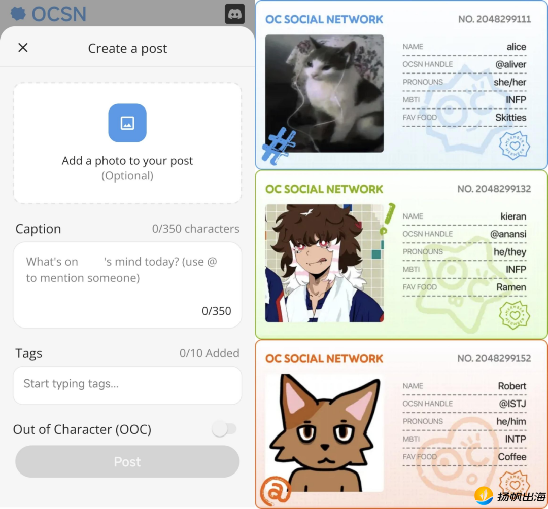 当AI角色、AI交互成为风口时,一款名为OC Social Network(以下简称为“oscn”)的新品却走向了另一面:它拥抱OC文化,支持“虚构”与“自定义”,却特意强调“真人社交、非AI”。