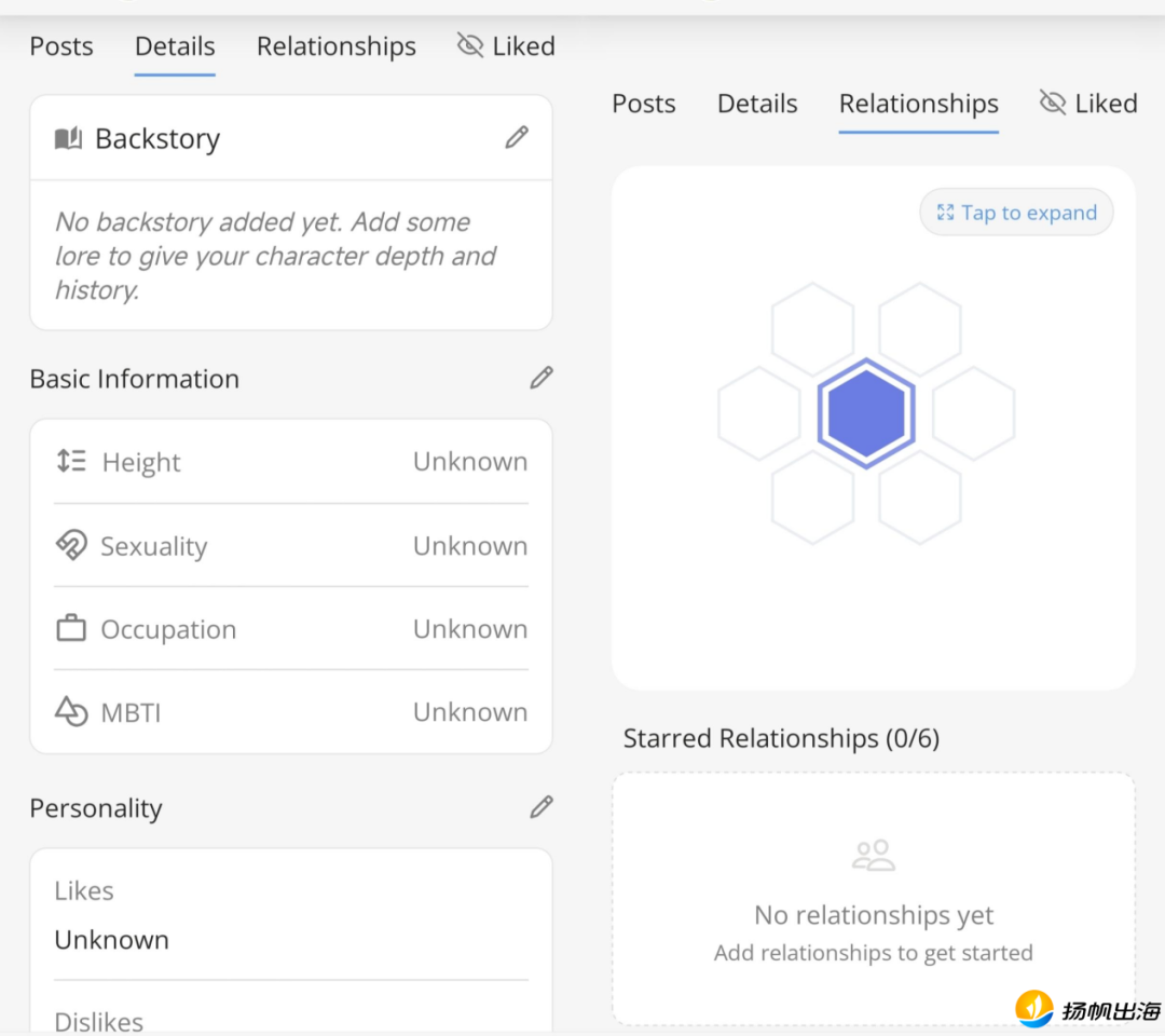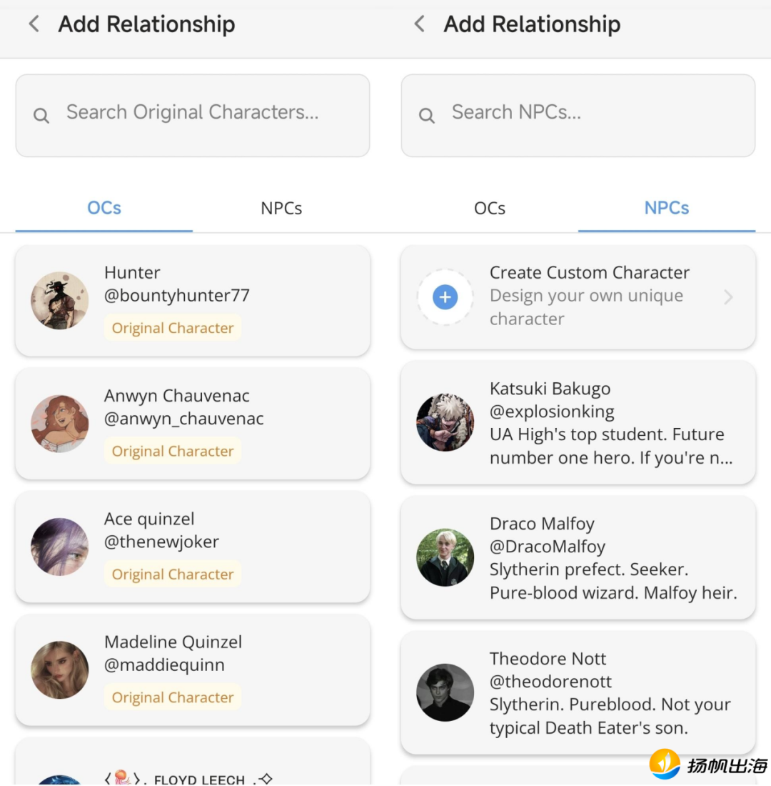 在这150个可添加的OC中,用户既可以选择由真实用户设定的OC,也可以选择系统预设的NPC。其中最多可设置6位为“星号关系”,类似于公开的“星标好友”,这一设计进一步强化了oscn的社交属性。
