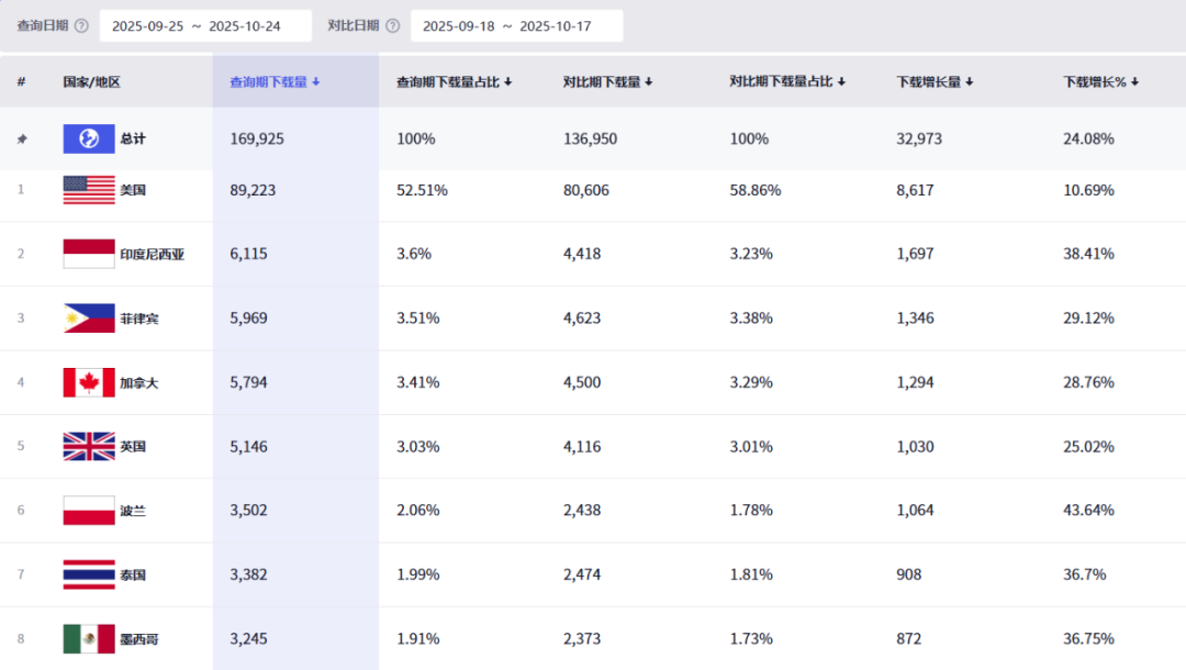 Insightrackr的数据显示,过去近30天,ocsn新增用户中约52%来自美国,部分用户来自印尼、菲律宾、泰国等东南亚地区,以及英国、波兰等欧洲国家。值得注意的是,目前ocsn仅支持英文界面,在没有语言本地化的适配下,仍能吸引东南亚用户的自然增长,反映出这种“自来水”传播在年轻群体中具有较强的渗透力。
