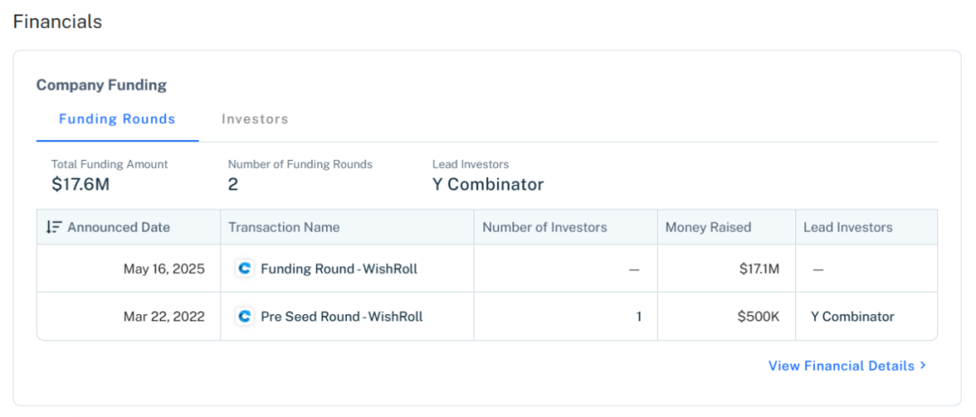 据公开信息显示,ocsn的开发商WishRoll成立于2020年3月,地址位于美国纽约,团队规模约为6人。根据Crunchbase数据,WishRoll于2025年5月完成了由Y Combinator领投的1760万美元融资。
