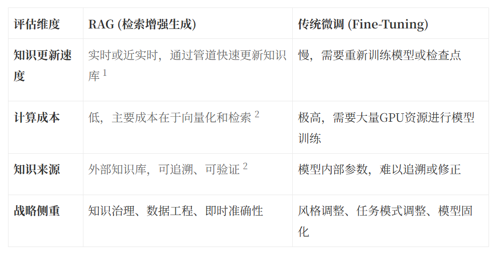 这种透明度是RAG的深层战略价值。它将AI产品的风险从难以预测的“模型幻觉风险”转化为可追踪、可修正的“数据检索失败风险”,极大地提高了产品的可控性。在追求合规性的企业环境中,RAG提供的透明度是满足监管要求的必要前提,其战略价值甚至超越了单纯的性能提升。在企业应用中,错误的回答往往比没有回答更具破坏性,RAG提供的验证机制有效规避了这种风险。