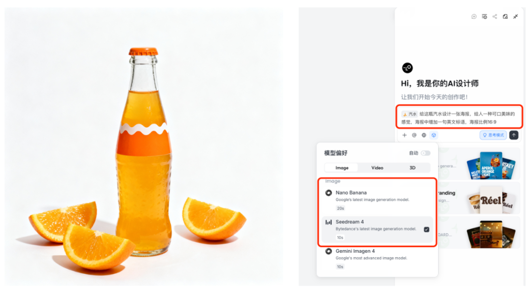 写好海报提示语直接就能获得一张完美保持产品一致性的汽水海报了,