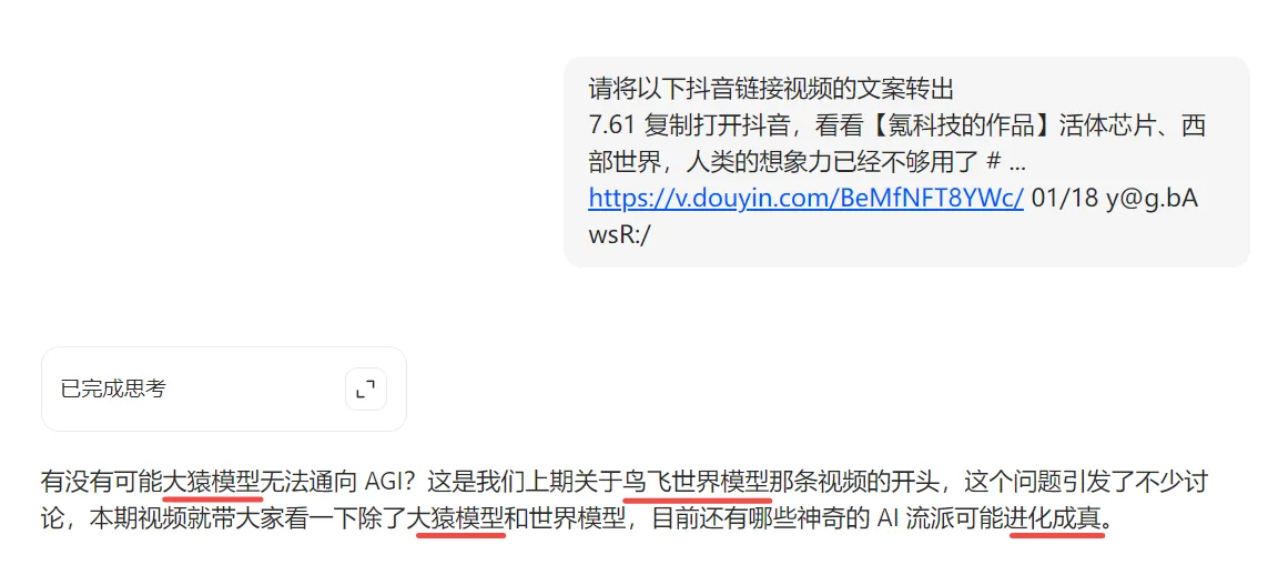 这意味着,AI能够在更短时间内梳理出文章的主要论点和结构,帮助用户快速抓住要点。此外,在处理长篇报告、法律文书等时,深度思考功能还可以自动整理要点、生成摘要,减轻人工阅读的负担。这类场景下,深度思考功能的开启能够极大地提高信息处理的效率和质量。