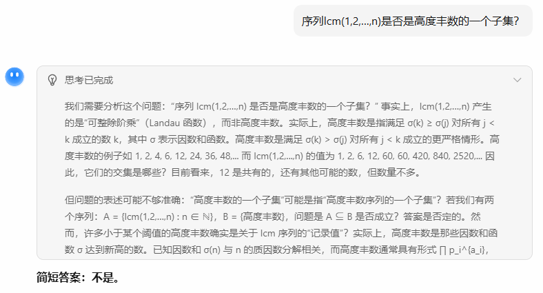 序列lcm(1,2,…,n)是否是高度丰数的一个子集?