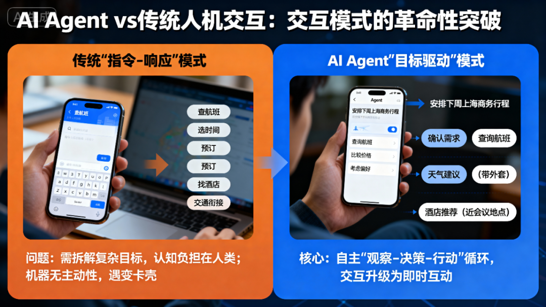 要理解AI Agent的革命性,我们得先看看传统人机交互模式的局限。想象一下,你用过的那些所谓的”智能助手”,其实大多数时候都不那么智能