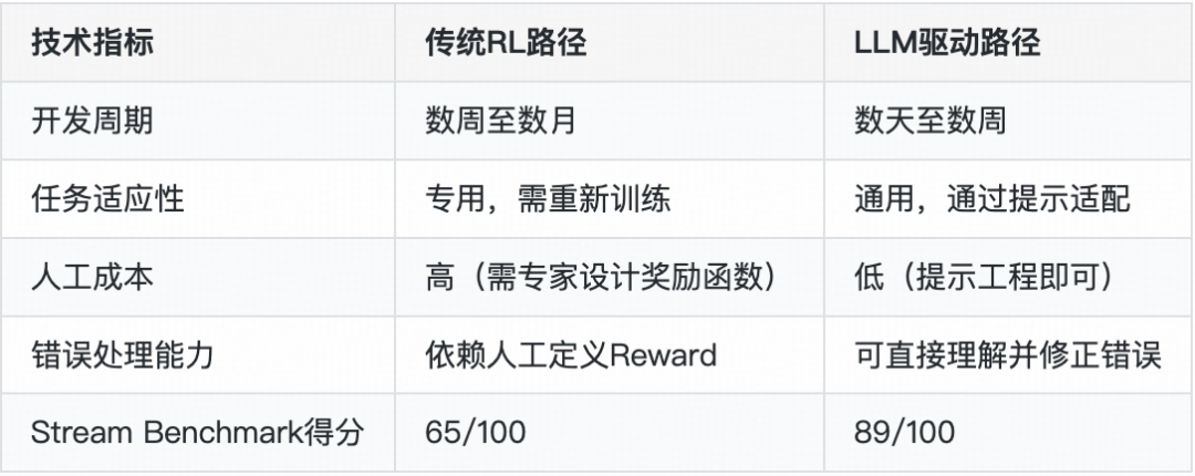 成本效益革命:LLM驱动 vs. 传统RL路径