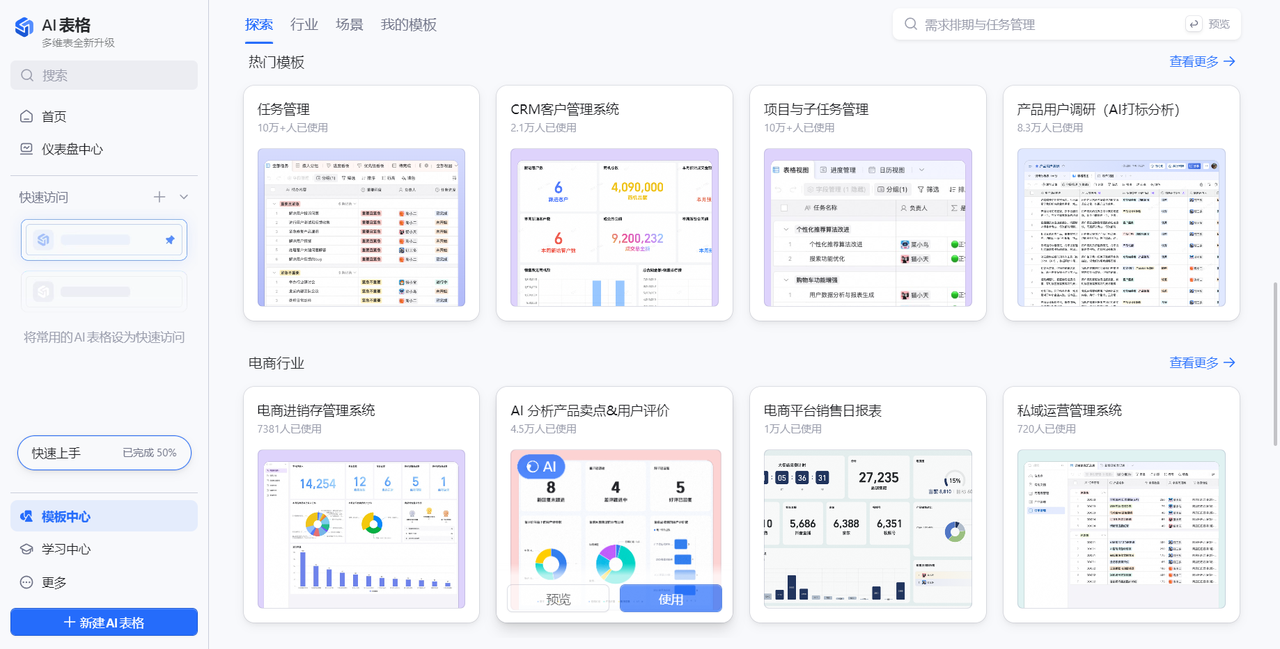 我还发现了“模板中心”的宝藏——里面居然有现成的“线下活动管理模板”,涵盖了从策划到复盘的全流程字段。我直接套用后改了几个细节,5分钟就搞定了10月的活动计划表,以前这至少要花40分钟。