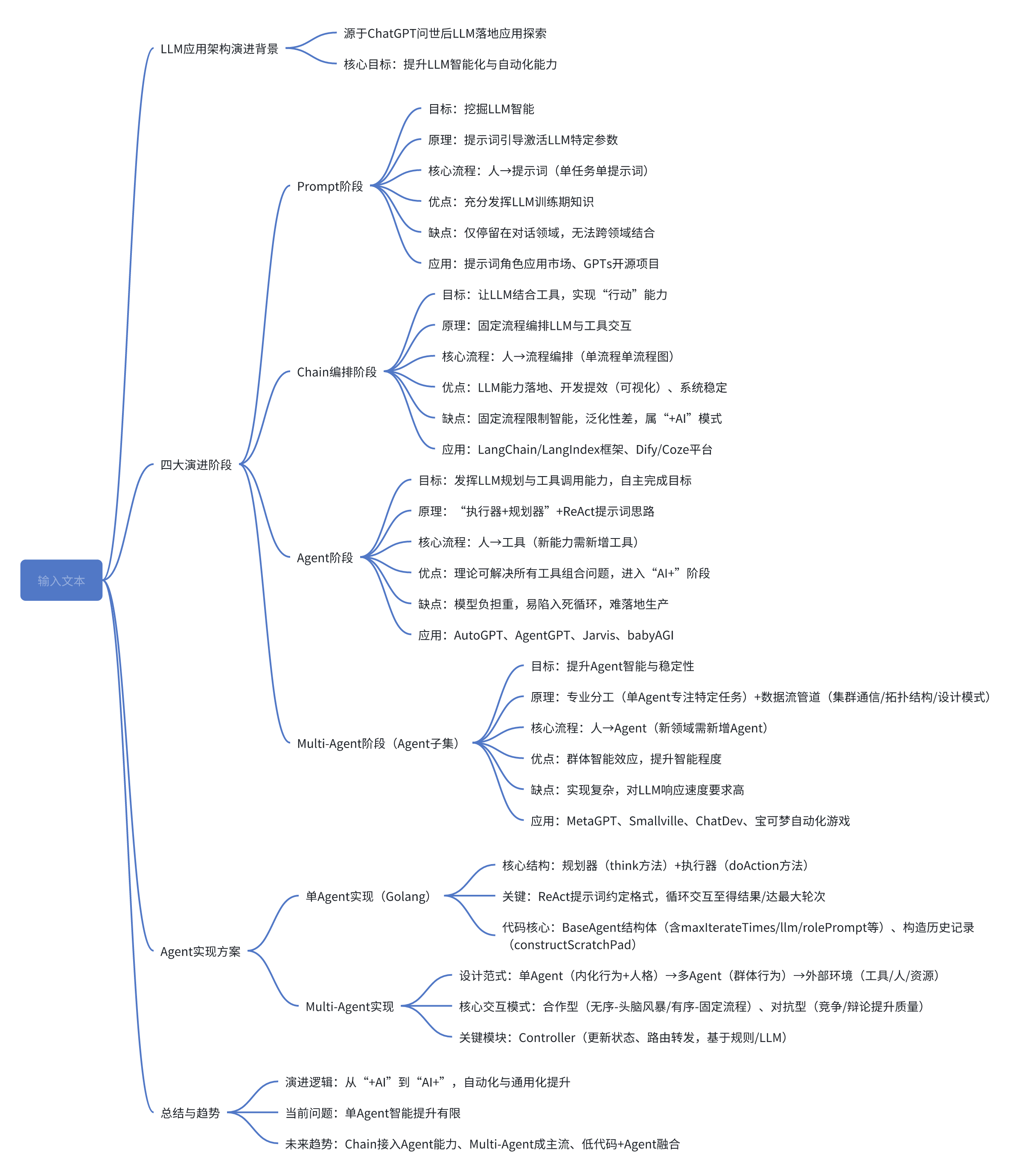 自ChatGPT问世后,LLM应用落地经历了“Prompt阶段”、“Chain编排阶段”、“Agent阶段”及作为Agent子集的“Multi-Agent阶段”四大演进阶段: