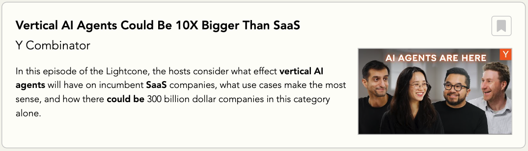 这期节目的语气很明确——YC 认为 “垂直 AI 智能体” 将成为未来十年的创业主流,就像 2010 年代的 SaaS 一样。