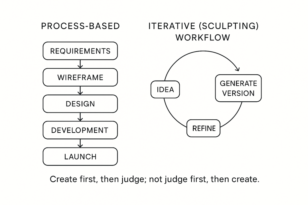 图:想法 → 生成 → 调整 → 再生成的“雕刻式”工作流
