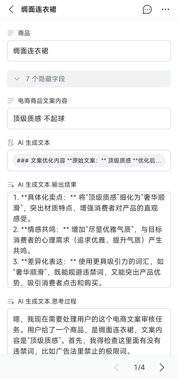 现在,我们用钉钉AI表格的“电商内容违禁词自检”模板,流程完全变了样。