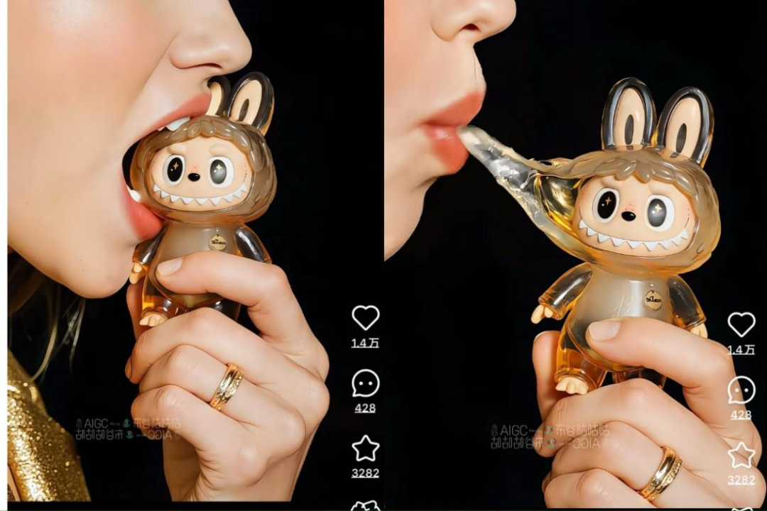 “labubu,水晶vs果冻,你想吃哪个?”在小红书上,一条点赞量达到1.4万的视频里,露出一个女主播的侧脸,先是咬开一个果冻材质的labubu,再换一个水晶材质的labubu,干脆利落地咬掉耳朵。有网友在评论区提到:喜欢labubu和不喜欢labubu的人都沉默了。