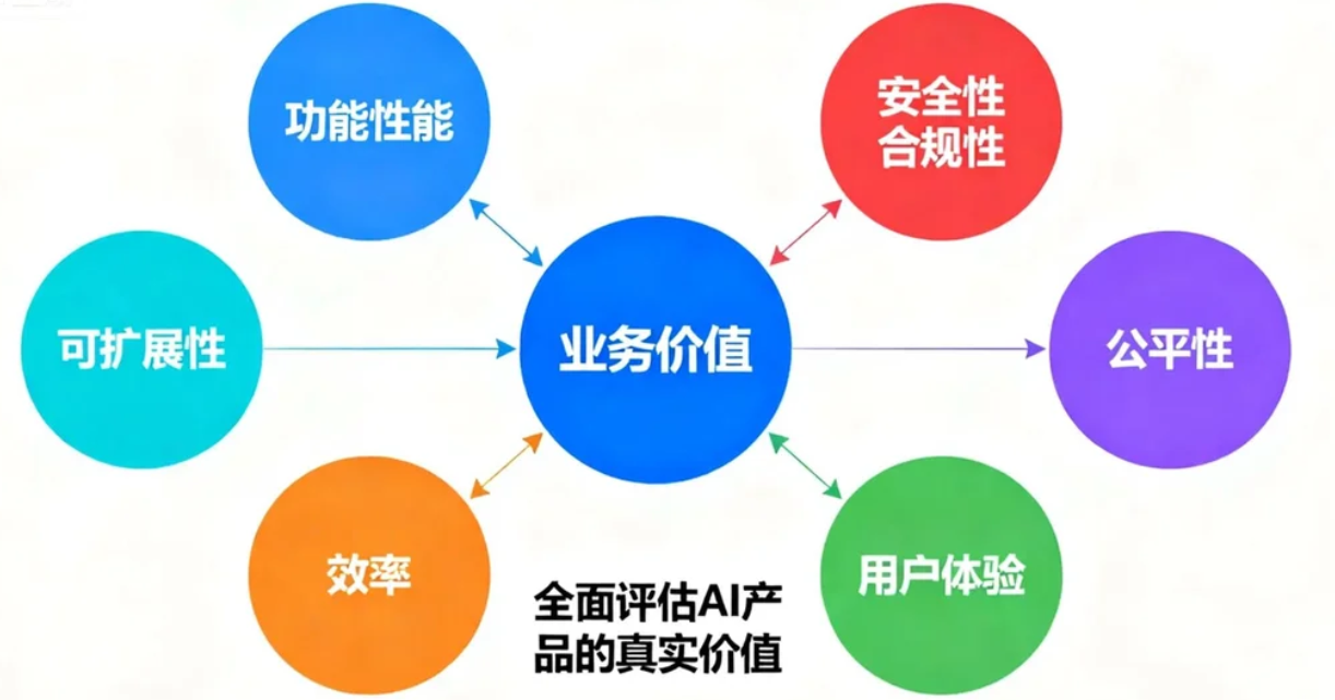 一个成功的AI产品,其价值是多维度的。产品经理必须超越单一的准确率指标,构建一个全面的价值评估网络。这个评估体系应至少涵盖以下几个维度: