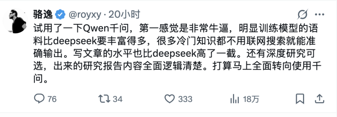 这几天,我在Twitter上也刷到了不少人对千问的评价,比如一位叫骆逸的建筑师是这样说的——