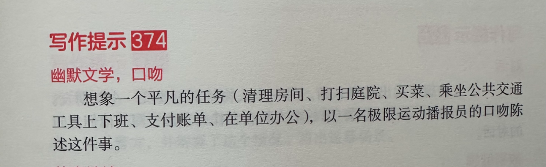 这道题是来自我最近买的一本书——《501个创意写作练习》,一本全是提示词的书,我随便挑了一道: