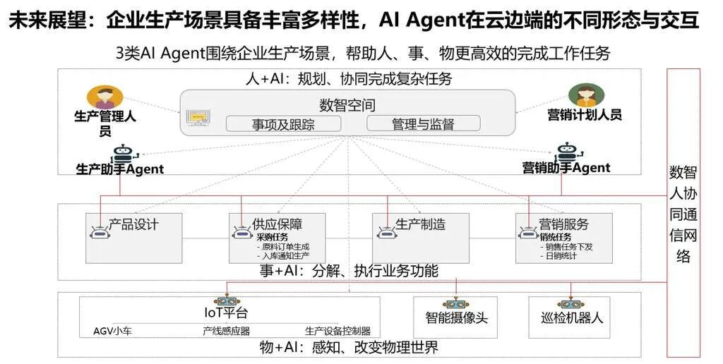 未来企业生产场景中,AI Agent将围绕人、事、物进行高效协同