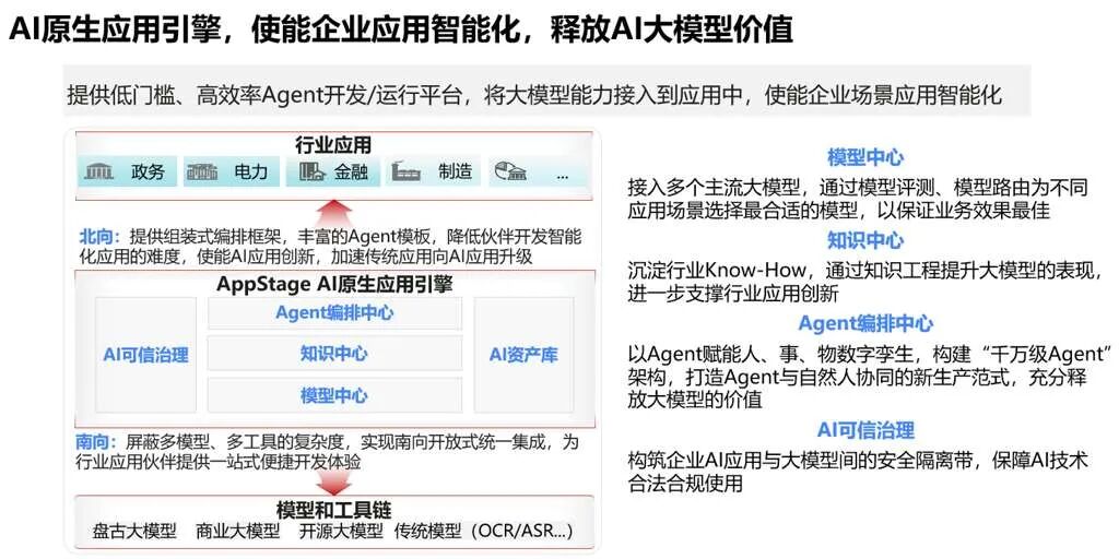 华为云的另一个特点是“不作诗,只做事”,专注于解决行业难题。他们针对矿山、铁路、气象等多个领域推出了专门的行业大模型,将AI能力与行业知识(Know-How)深度融合。这种“深入田间地头”的打法,构建了很高的行业壁垒。其AI原生应用引擎AppStage,正是这种思路的体现,旨在帮助企业将大模型能力无缝集成到现有应用中,释放AI价值。